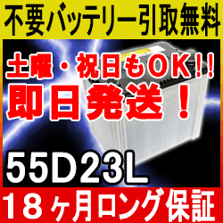 55D23L【あす楽対応/不要バッテリー引取り処分付】土・祝もOK!1年6ヶ月保証 即日発送!充電済み! 激安バッテリー引取送料無料 自動車バッテリー/カーバッテリー/リサイクルバッテリー/リビルトバッテリー/リユース/中古/車用/カー用品/メンテナンス/処分/廃棄